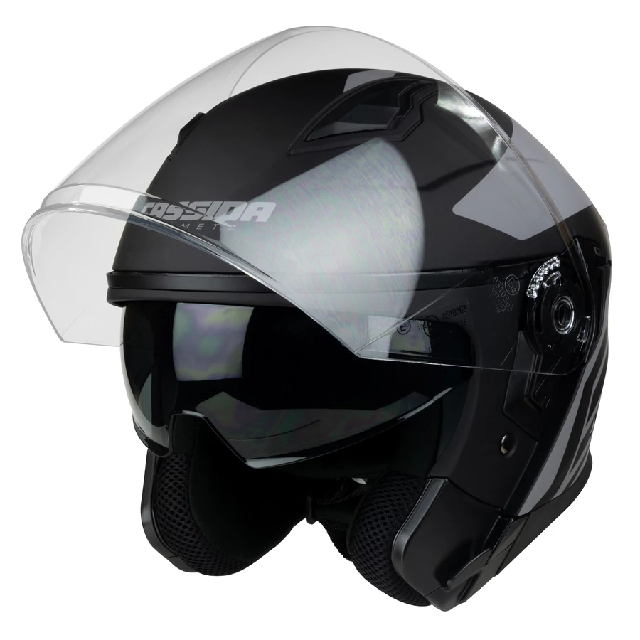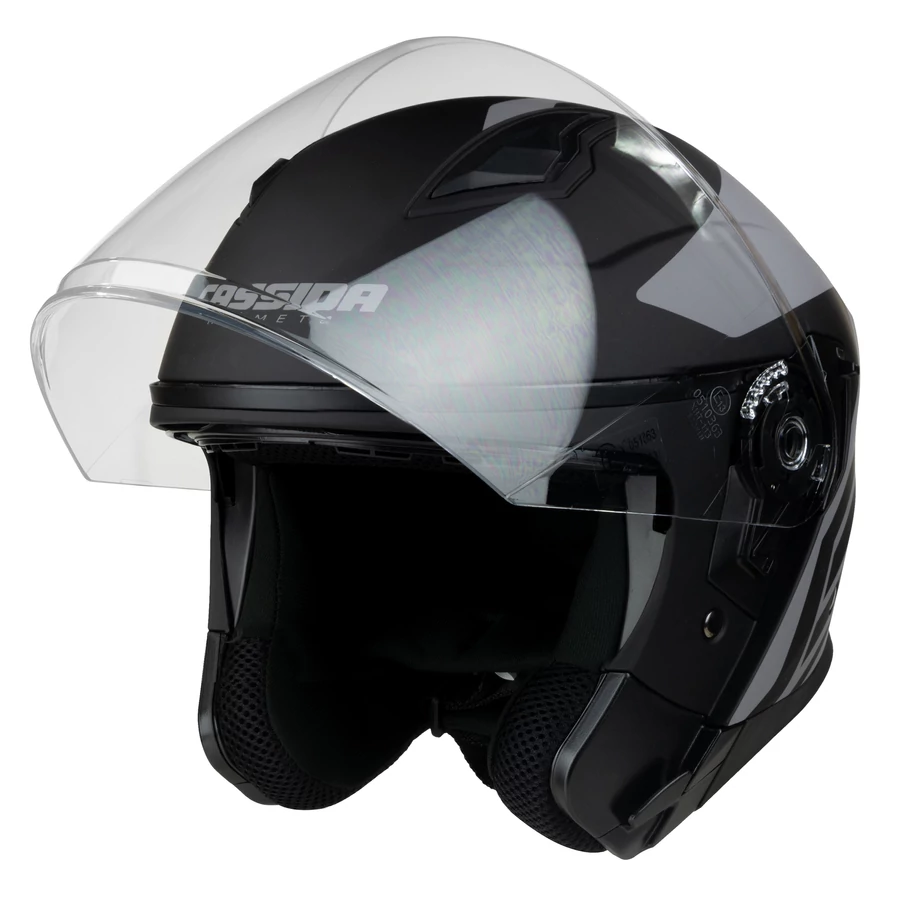 A Cassida Jet Tech Corso Nyitott Bukósisak, integrált napszemüveggel, minden motoros számára optimális védelmet és kényelmet biztosít.