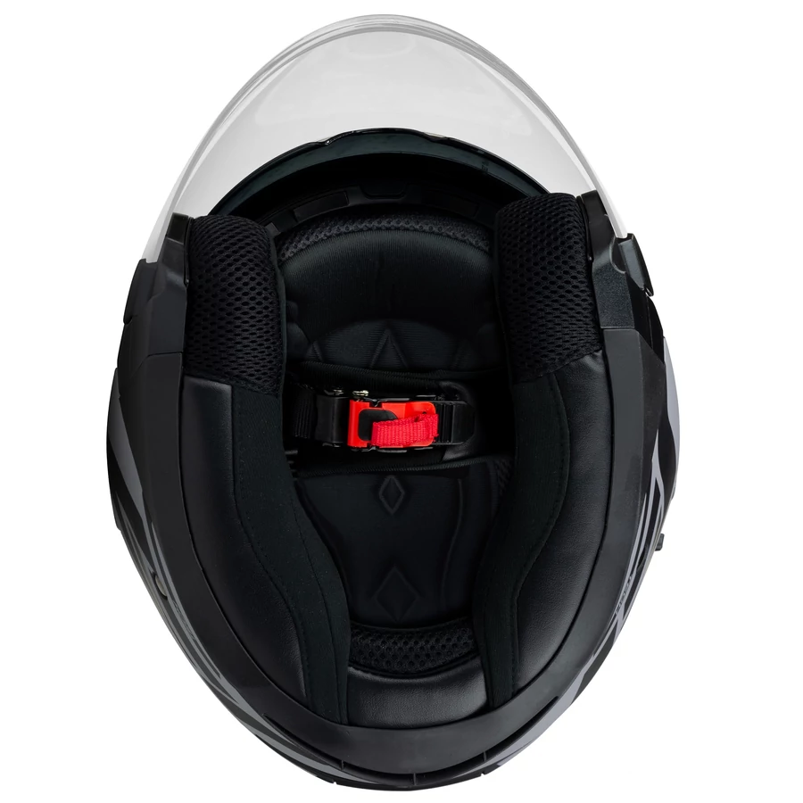 Az integrált napszemüveg kiváló védelmet nyújt a napsütés ellen, és biztosítja a tiszta és zavartalan látást még a legfényesebb napokon is. Az állítható rögzítőcsat gondoskodik a sisak biztos rögzítéséről, minden utazási körülmény között.