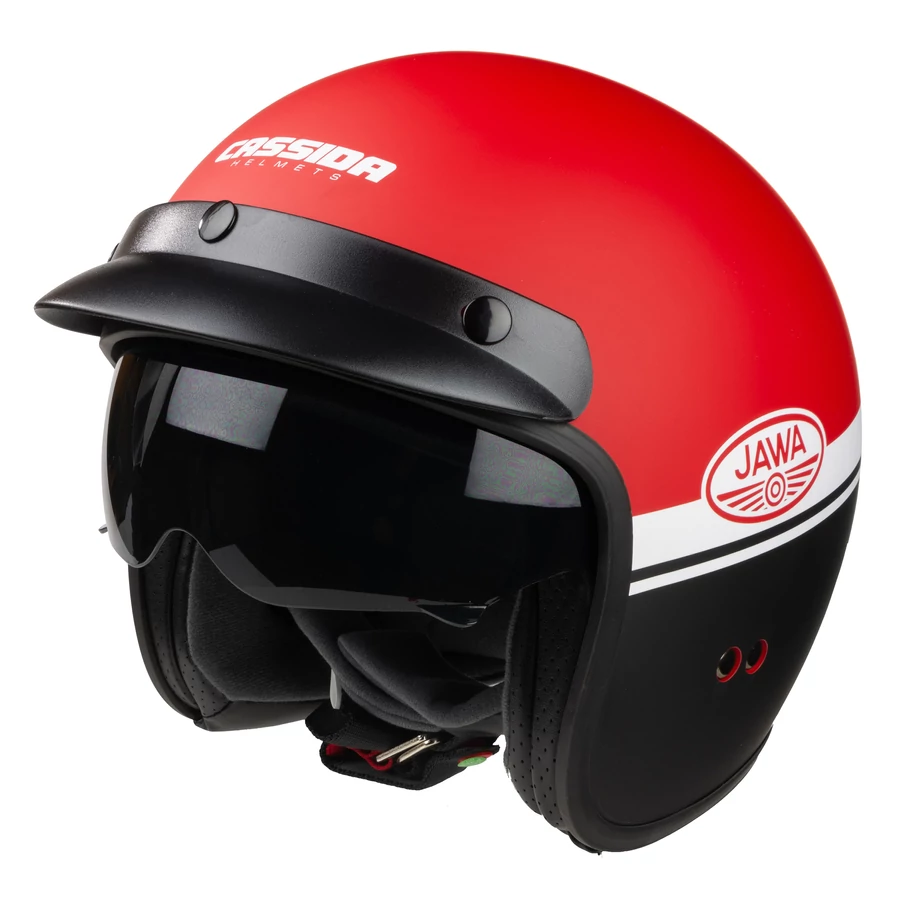 Üdvözöljük a Cassida Oxygen Jawa OHC Nyitott Bukósisak világában, mely integrált napszemüveggel rendelkezik, hogy a vezető kényelmes és biztonságos utazást élvezhessen.